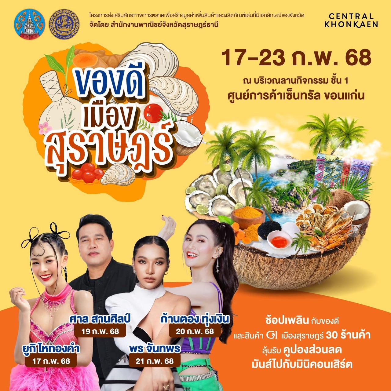 การจัดงานแสดงและจำหน่ายสินค้าเด่นที่มีเอกลักษณ์ของจังหวัดสุราษฎร์ธานี ภายใต้ชื่องาน “ของดีเมืองสุราษฎร์” ภายใต้โครงการส่งเสริมศักยภาพการตลาดเพื่อสร้างมูลค่าเพิ่มสินค้าและผลิตภัณฑ์เด่นที่มีเอกลักษณ์ของจังหวัด ปีงบประมาณ พ.ศ. 2568